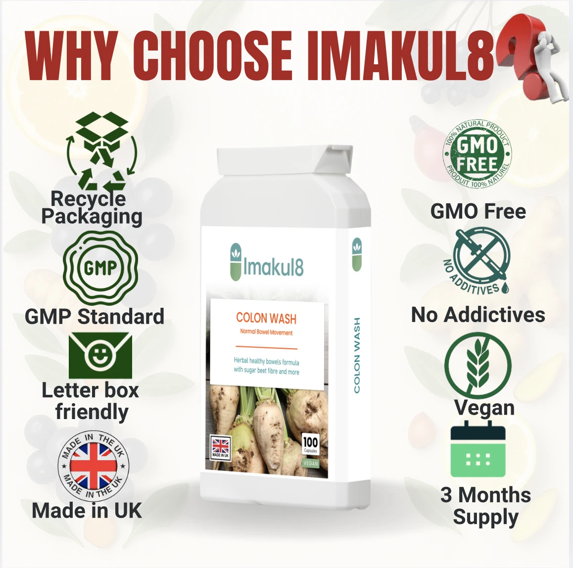 Imakul8 COLON WASH is ideal for individuals seeking a natural, plant-led way to maintain gut comfort, support everyday wellbeing and reinforce healthy dietary habits.