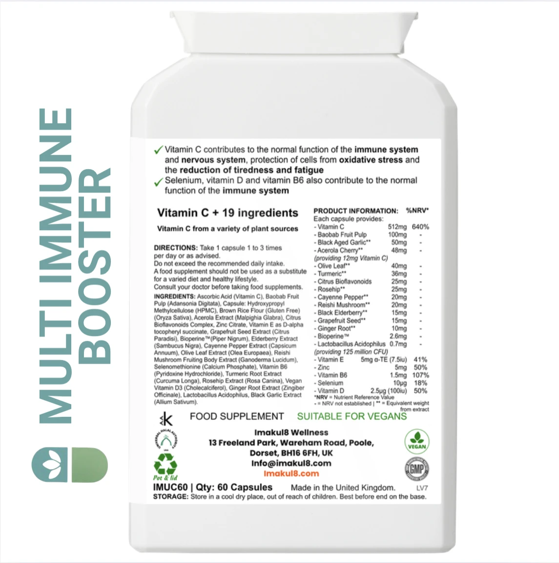 Imakul8 Multi Immune Booster is a luxury, high-potency immunity formula designed to strengthen your body’s natural defences, enhance resilience, and support overall vitality.