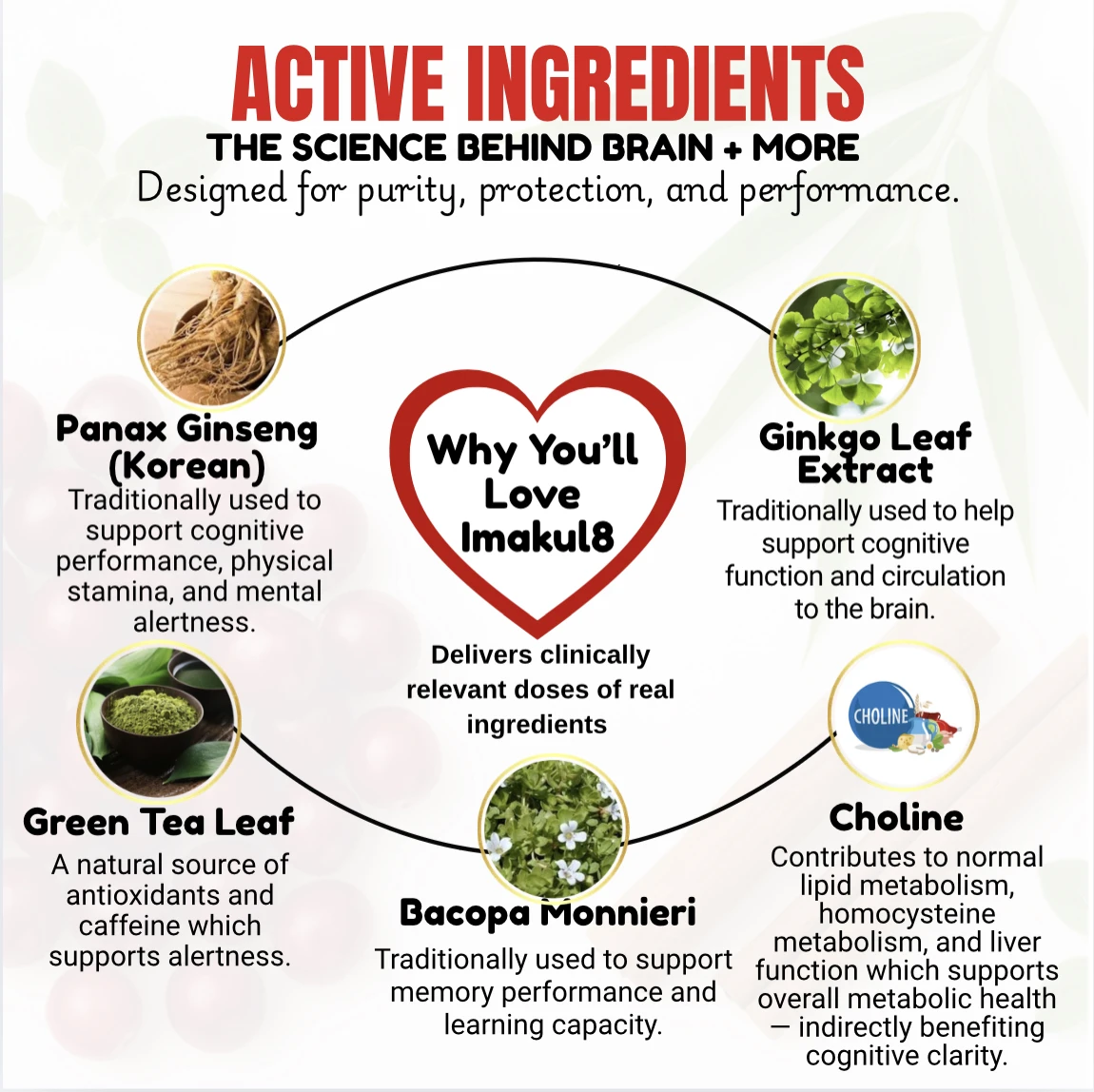 This unique and comprehensive formula contains a special combination of herbs, vitamin and mineral ingredients that support both cognitive function and energy levels, by providing valuable additional nutritional energy to your brain and body backed by science .