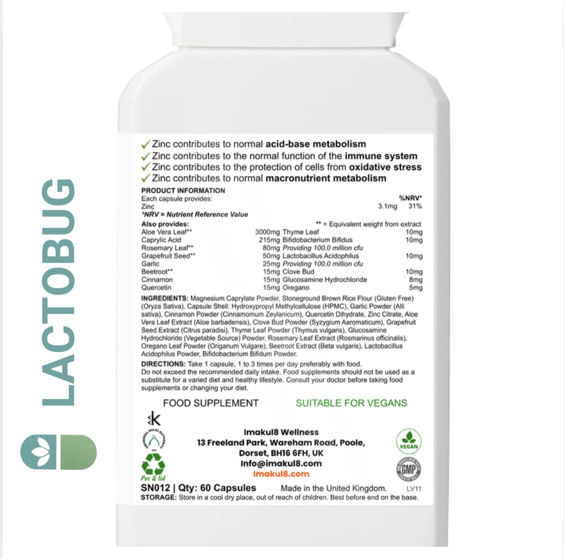 Discover Imakul8 LACTOBUG™, an advanced gastrointestinal complex formulated to support daily digestive balance using natural plant extracts, caprylic acid, friendly bacteria cultures, glucosamine HCl and essential nutrients.