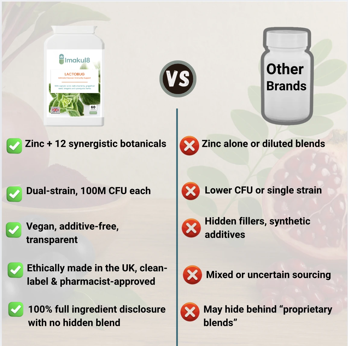 Designed to be taken alongside a low-sugar, low-yeast lifestyle, LACTOBUG™ provides a harmonised approach to internal comfort and balance.