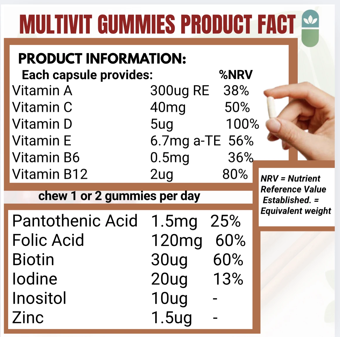 Vitamin D also contributes to the maintenance of normal bones and teeth, while Vitamin E contributes to the protection of cells from oxidative stress. With added Folic Acid, Iodine, Inositol and Zinc, Imakul8 Multivit Gummies provide gentle, everyday nutritional support in an easy-to-take gummy format.